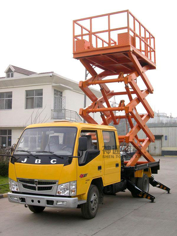 車載式升降平臺采用各種車底盤加固平臺底架,利用本車動力在變速箱上輸出驅(qū)力油泵來操作的,無需外接電源,操作靈活簡單、移動方便、機動性強、工作范圍大??蛙嚳筛鶕?jù)需求選用解放、東風(fēng)、江鈴、福田等車型;該車載式升降機廣泛應(yīng)用于市政建設(shè)維護、路燈維修、園林修剪、電路檢修、高速公路維護等場所的高空作業(yè);也可作為臨時性的高空照明、廣告宣傳等。